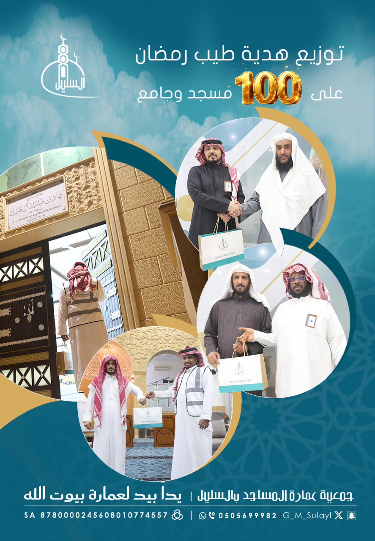 توزيع هدية طيب رمضان على 100 مسجد وجامع بالسليل